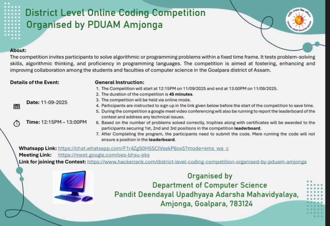 Welcome To PANDIT DEENDAYAL UPADHYAYA ADARSHA MAHAVIDYALAYA, AMJONGA